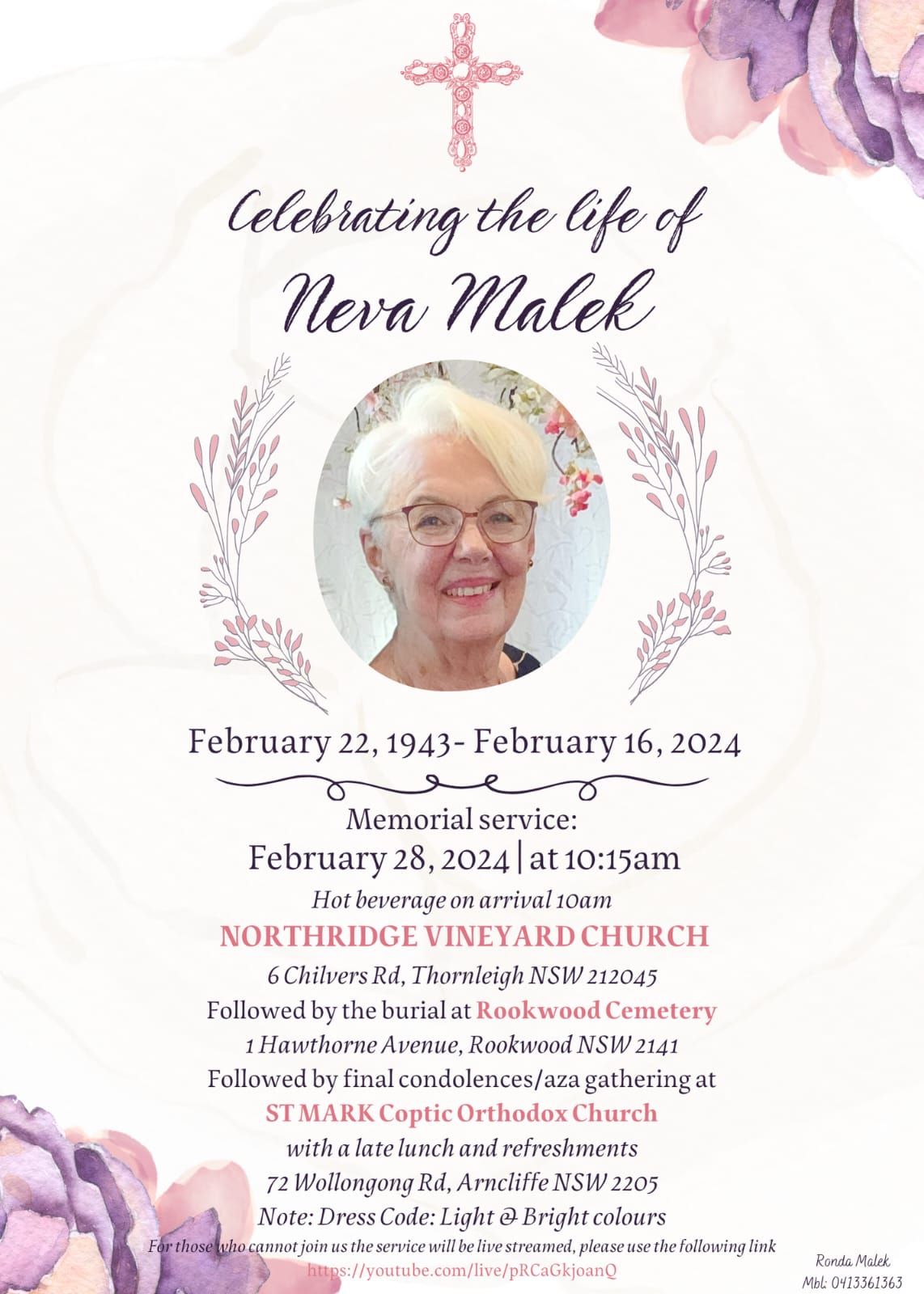 ١٠.عزائنا لرحيل السيدة الغالية/ نيفا مالك